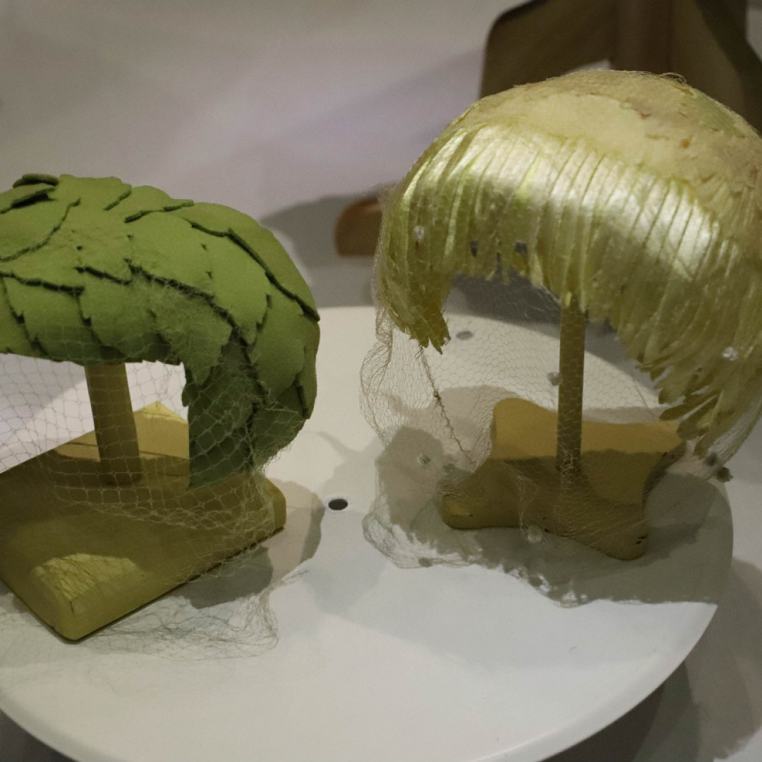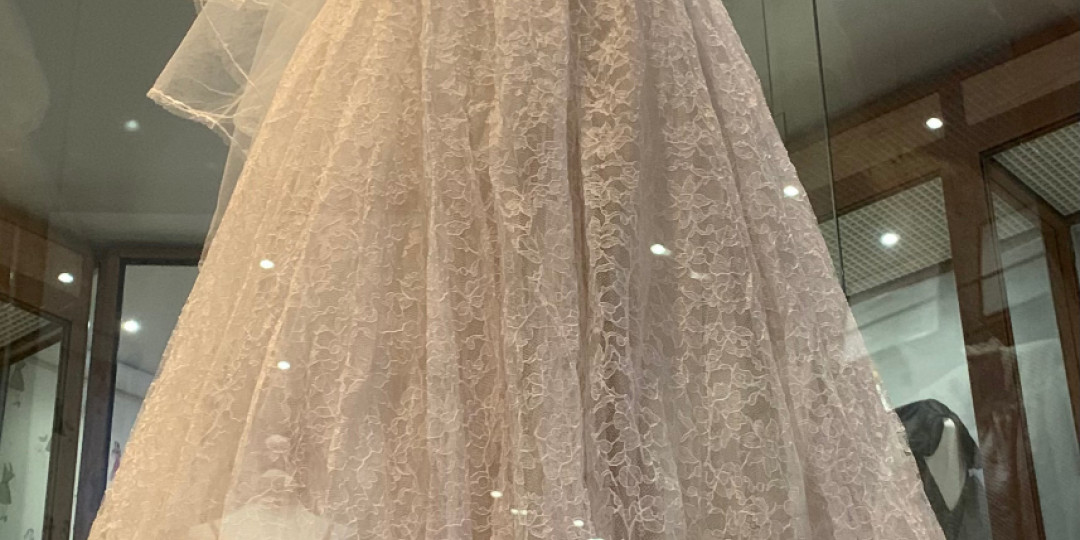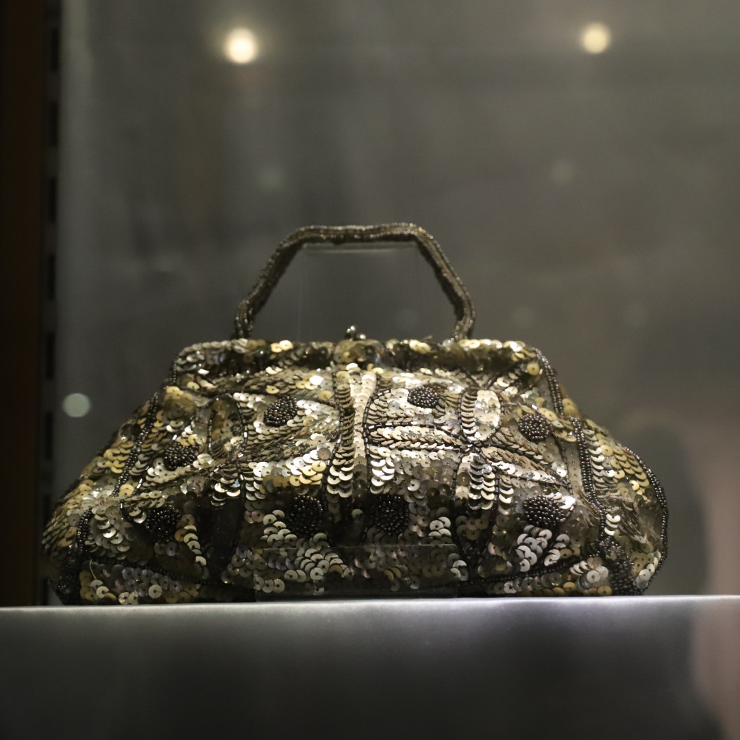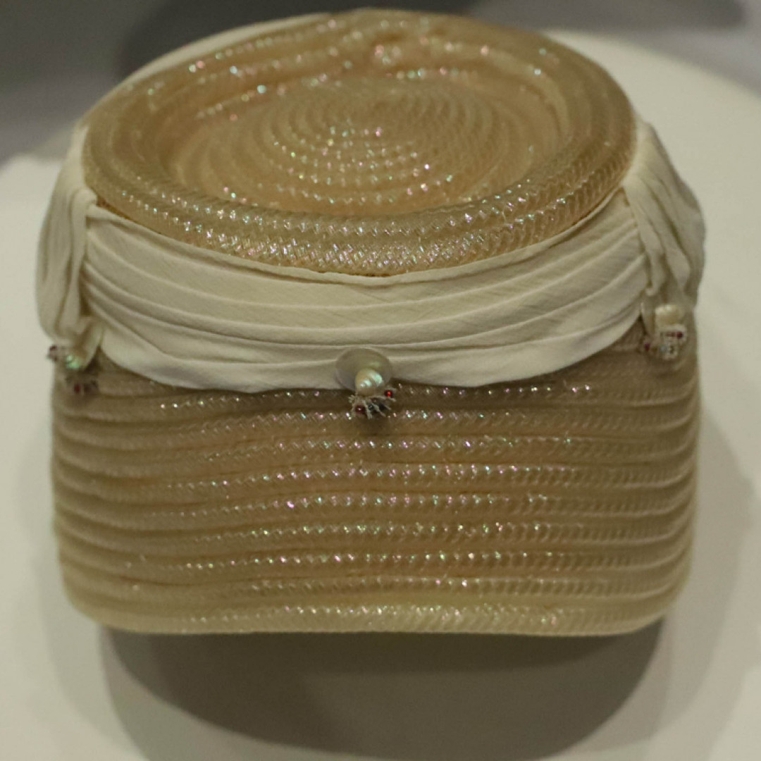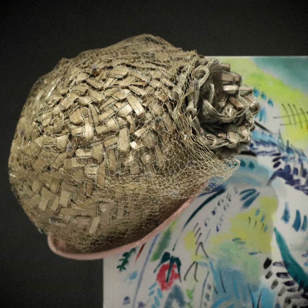 The ground floor costume exhibition is dedicated to the work of local artist and designer Marie Bisson (1927 – 1964). Commissioned by the States of Guernsey to organise costumes Guernsey's 1953 Coronation Pageant, Marie's work is displayed through original sketches, illustrations and correspondence of the time. Garments designed and created by Ms Bisson are displayed, notably her wedding dress reflecting the glittering beadwork style of the day influenced by Norman Hartnell's 1953 gown designed for the coronation of Queen Elizabeth II.