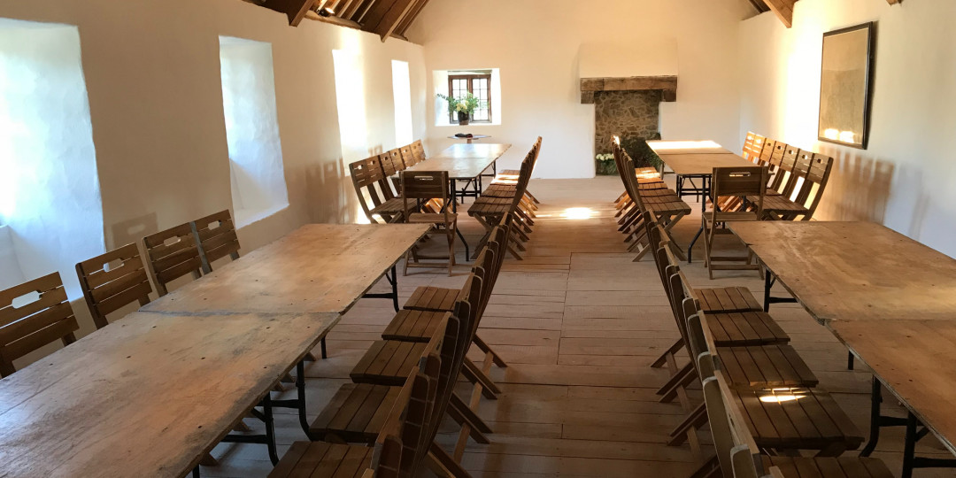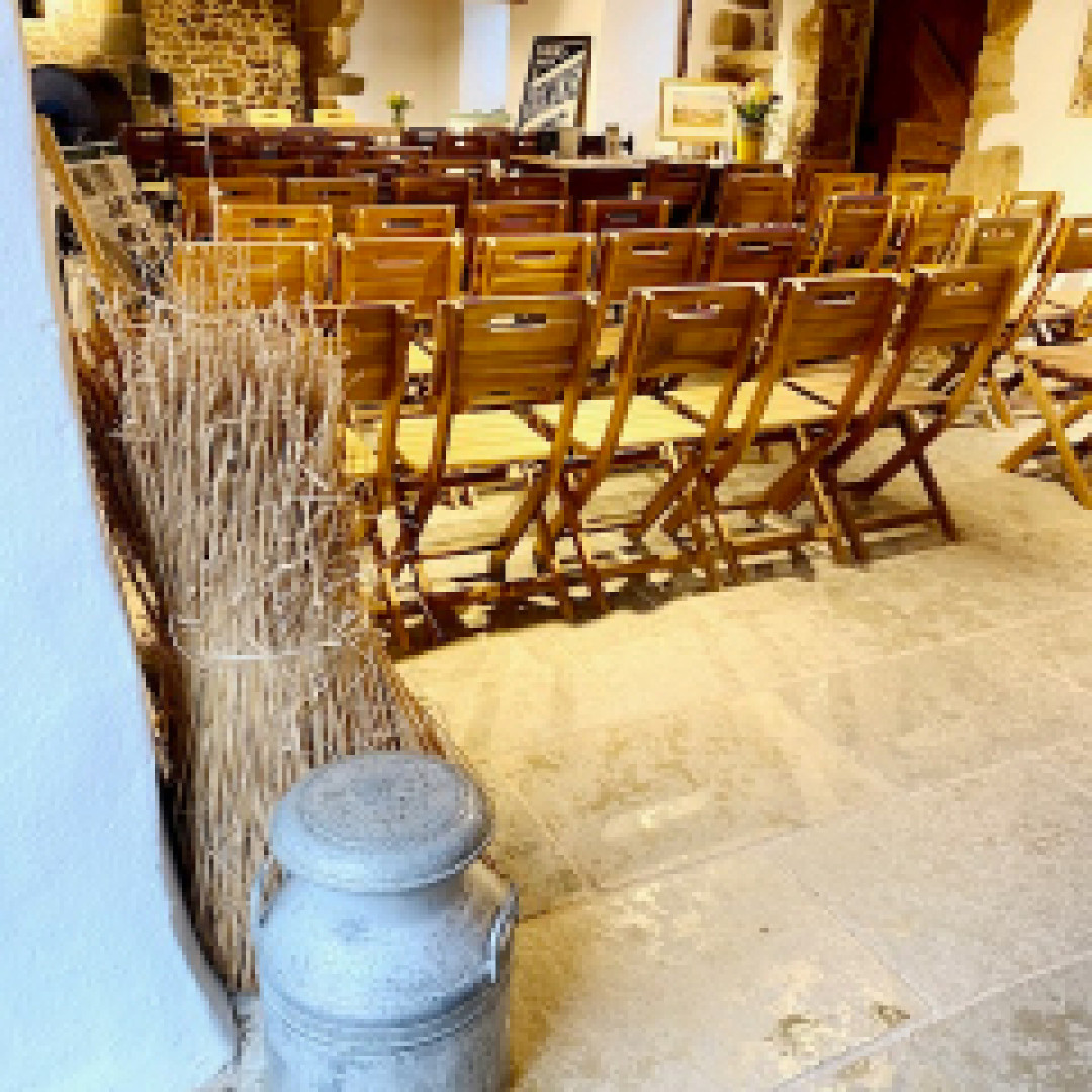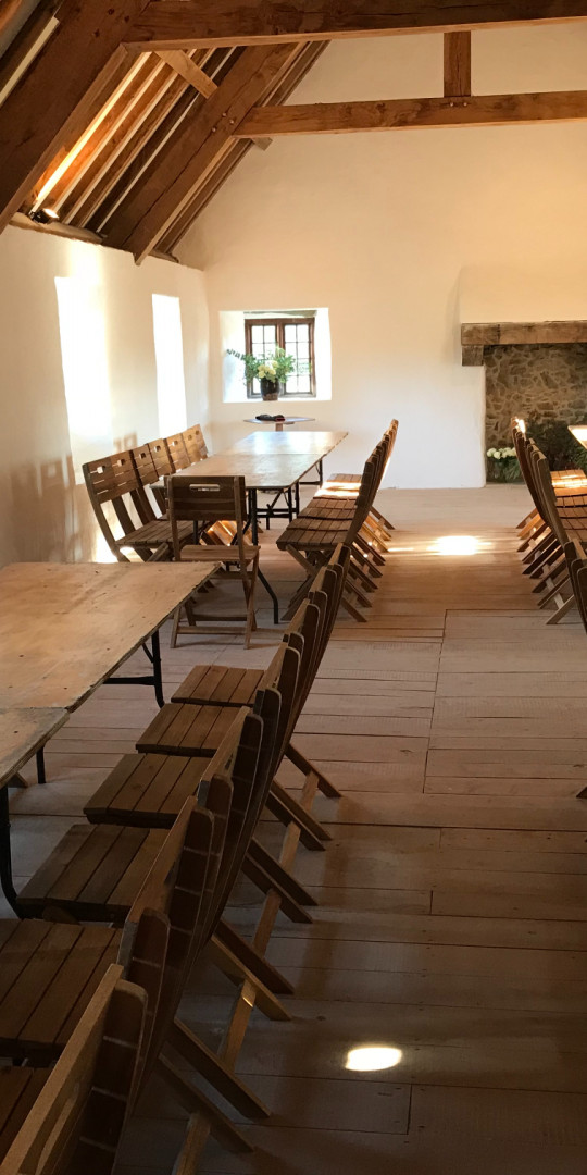 The rural setting and finely restored buildings of Les Caches Farm provide a welcome setting for gatherings of up to 100 people. Surrounding pastures, including an apple orchard with picnic tables and benches, are open all year round.