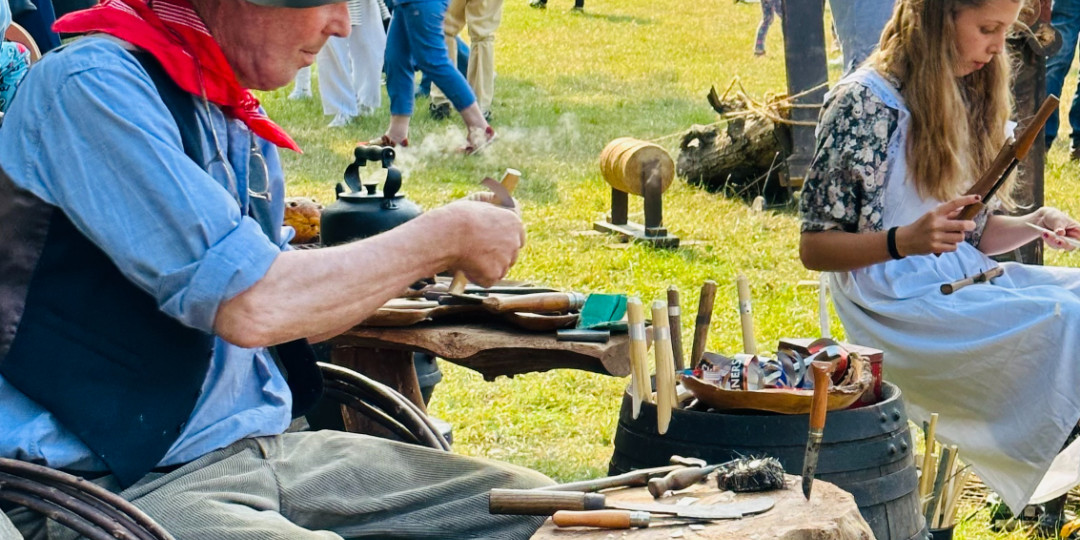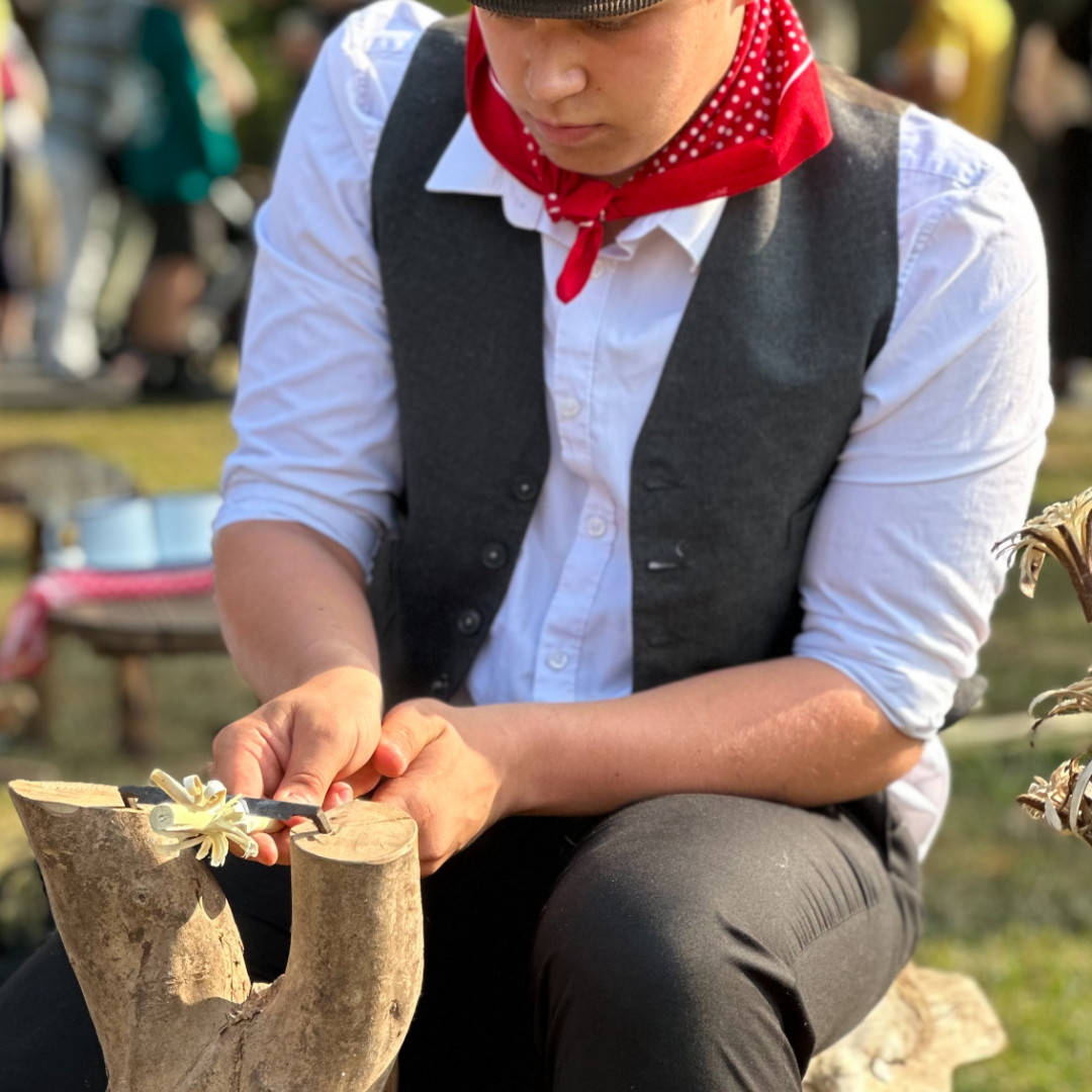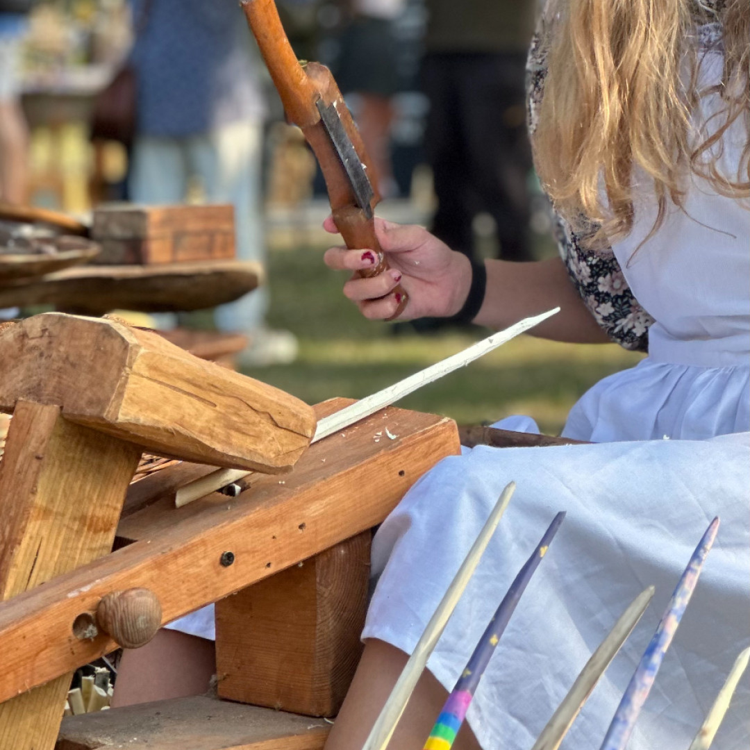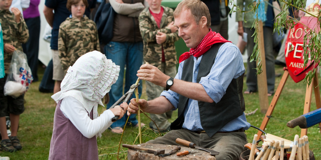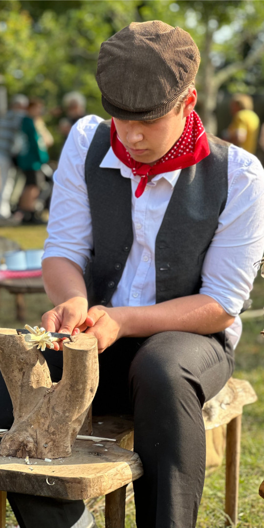 "Lé Viaër Marchi is a very special event for me and my extended family, and this year we fielded three generations; peg making by me, brother Jeremy making rope, my son Jamie on pole lathe and, for the first time, grandson Harrison who made traditional Gypsy willow flowers. Harrison’s two younger sisters are keen to take part next year. By my reckoning I started demonstrating at the event some 43 years ago and it has brought so many rewards not least of which is constantly hearing from today’s children, as they make a peg to take away, that their father or mother also made pegs with me …..when they were children."