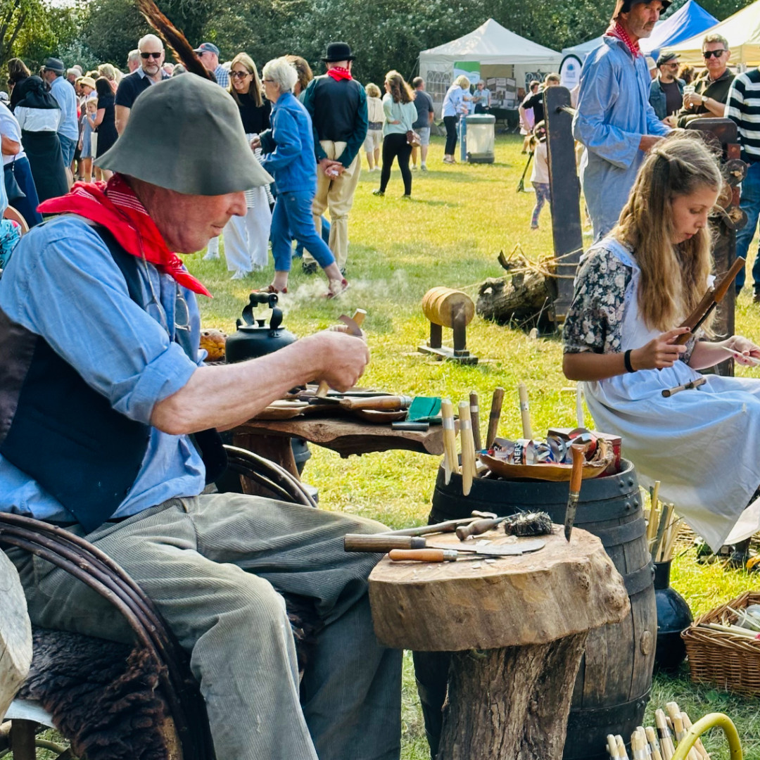 I once demonstrated to the Queen when she visited, and Sally-Claire gave her a bouquet of marigolds from the garden absolutely crawling with green fly. Prince Philip wanted to know whether I made a living at this craft and was amused to find that I was a Civil Servant. The addition of a handcart, barrels and an open fire over which I cooked a stew, plus a cast iron barbecue delivering bacon and egg sandwiches added to our display. One of the most magical evenings of the year and such a great feeling to be surrounded by my extended family."