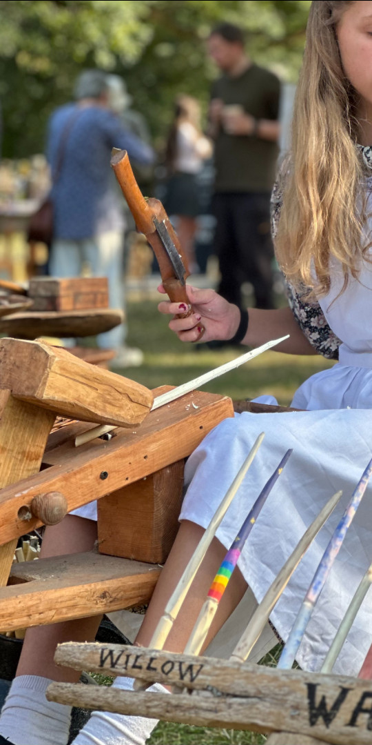 Little did I know that I will be making pegs at this event for over 50 years and became known as 'The Willow Man'. I also made Besom brooms and turned wood using a traditional pole lathe powered by a 17 foot-long springy branch.