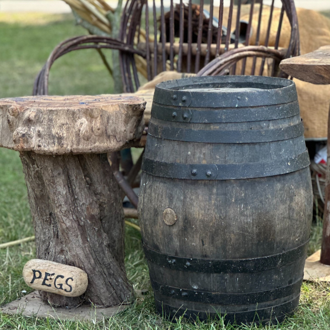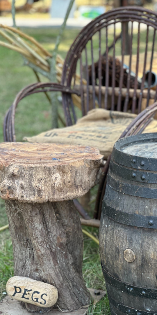 “After starting work at the IDC* I was foraging for brambles at Petit Bôt when a car passed down the dirt track. It was Farmer and Douzaineer Fred Heaume, whose son Richard started the Occupation Museum. As a member of the committee he asked me what I was doing and I explained, at which point he invited me to demonstrate making baskets at a new event that The National Trust has been running for a couple of years called Le Viaier Marchi held at Saumarez Park. It sounded like my cup of tea so I agreed, but then realized I would not have enough material ready to make a basket and so opted for Peg making.