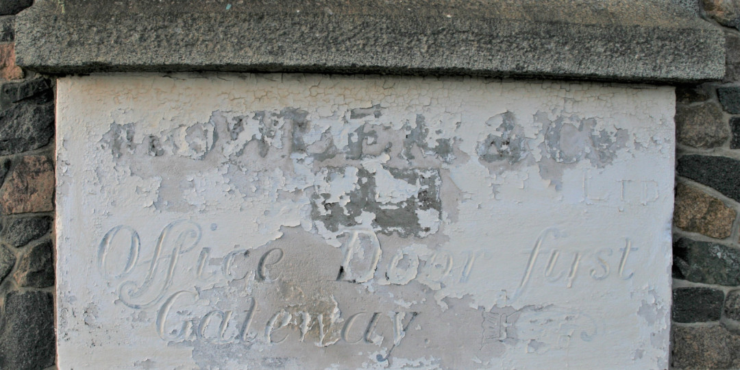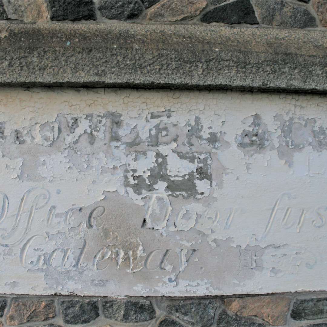 The office building – the front façade of which is curved – is built with various types of local granite in a random style, identical to that of Church House adjacent to St Sampson’s Church which was restored by the National Trust of Guernsey. The office building’s wooden sash windows and dormers, with large blue granite surrounds to the sash windows, add a great deal to the façade of the building. The large brick and mortar chimney with seven chimney pots is also a notable feature of the building. Set between two windows on the first floor is a plaque constructed in sand and cement with the initials B & F which stands for George Burt & Joseph Freeman, the two managing directors of Mowlem’s at this time with the 1870 build date below. On the East side of the building and set in the façade, is an oblong sign constructed in sand and cement that reads “John Mowlem and Co Ltd. Office Door First Gateway” with a hand and a pointed finger, which takes one back to a bygone age. The metal weighbridge is long gone, but the granite surround is still in place, indicating where box carts pulled by one horse would have stopped to weigh granite loads from the quarries, or when transporting granite to the nearby vessels at St Sampson’s Harbour for export to the U K.