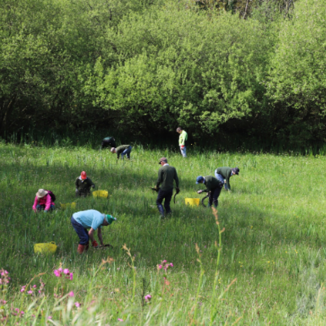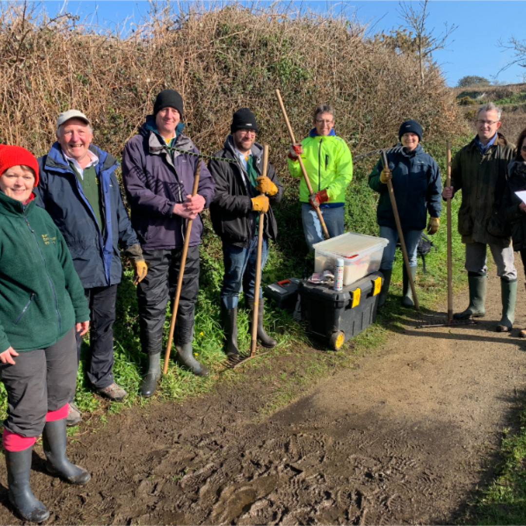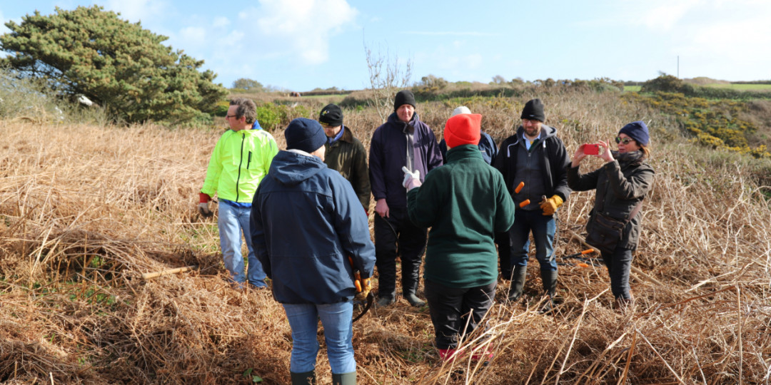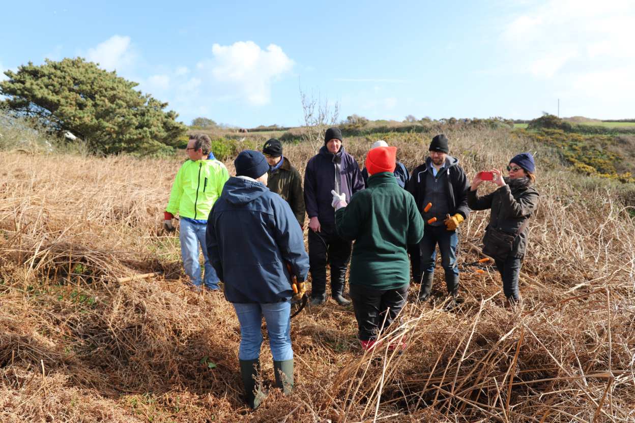 📸 National Trust of Guernsey: Guernsey Conservation Volunteers working at National Trust of Guernsey's Lé Petit Pré, a wild orchid field in the Talbot Valley | GCV accompanied by Sir Richard Cripwell on a working party at Lé Petit Pré | GCV working at NTG's land at Le Gouffre and Le Bigard